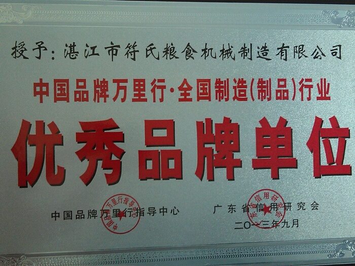 2 2013年被授予“符氏米機系列產品被中國質量監(jiān)督促進工作委員會列入:廣東省著名品牌”榮譽證書